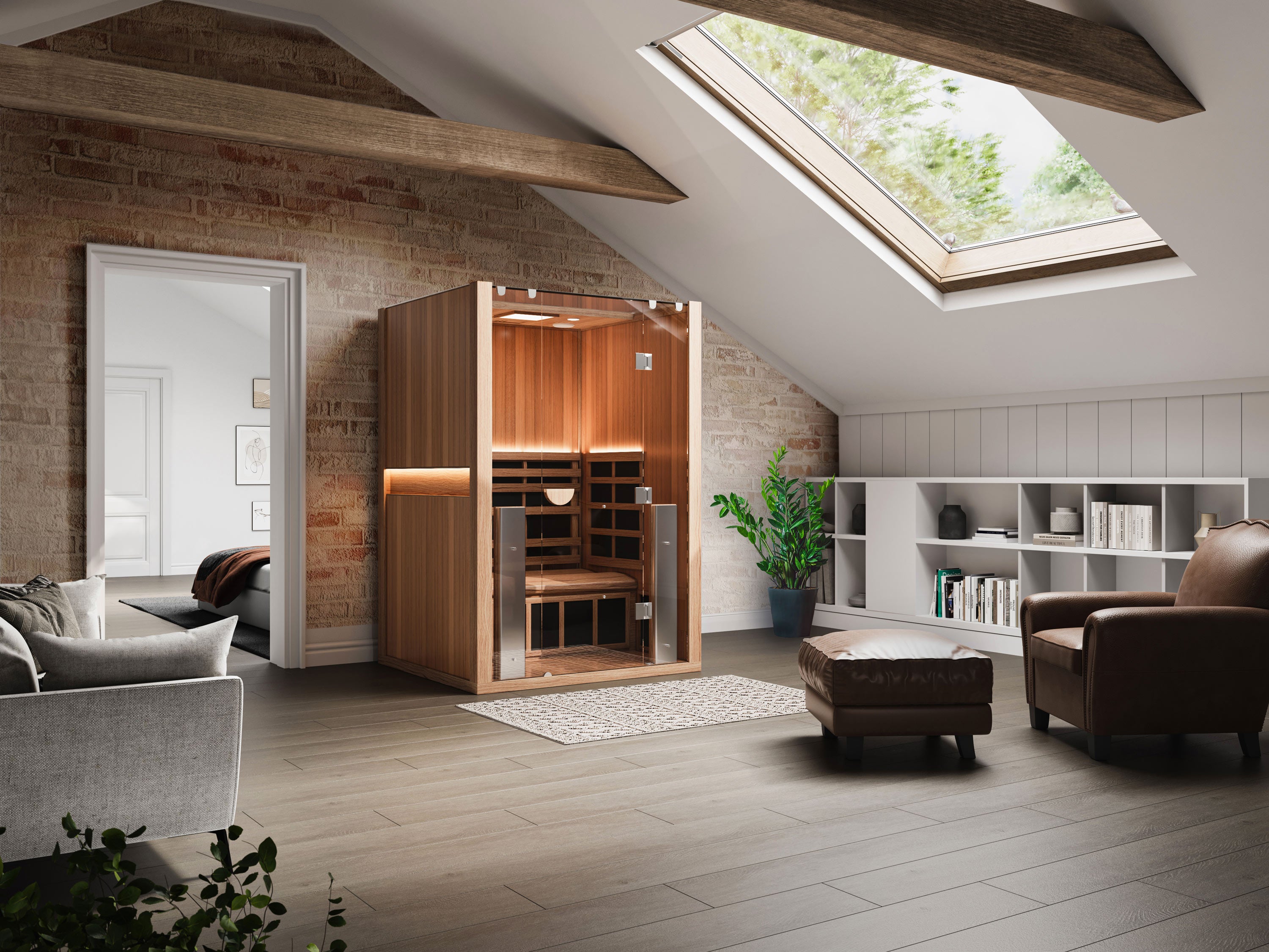 Perfect for couples or individuals seeking extra space, the Clearlight® 2-Person Infrared Sauna blends modern wellness technology with timeless comfort for the ultimate home spa experience.