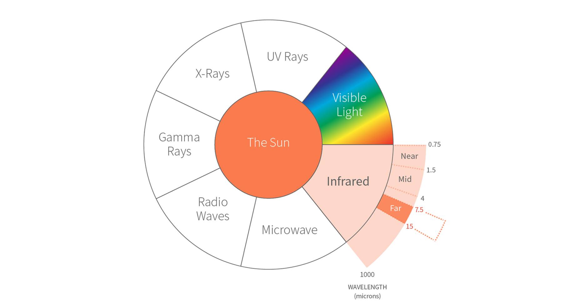 Most infrared cameras work by detecting infrared radiation on the electromagnetic spectrum. An infrared image can be shown if an object produces thermal infrared energy. This infrared radiation is emitted by many objects, including the sun and even our skin, and an infrared camera captures this thermal infrared radiation, or heat, to create an infrared image. The hotter the temperature, the more heat, energy and infrared radiation it will emit.